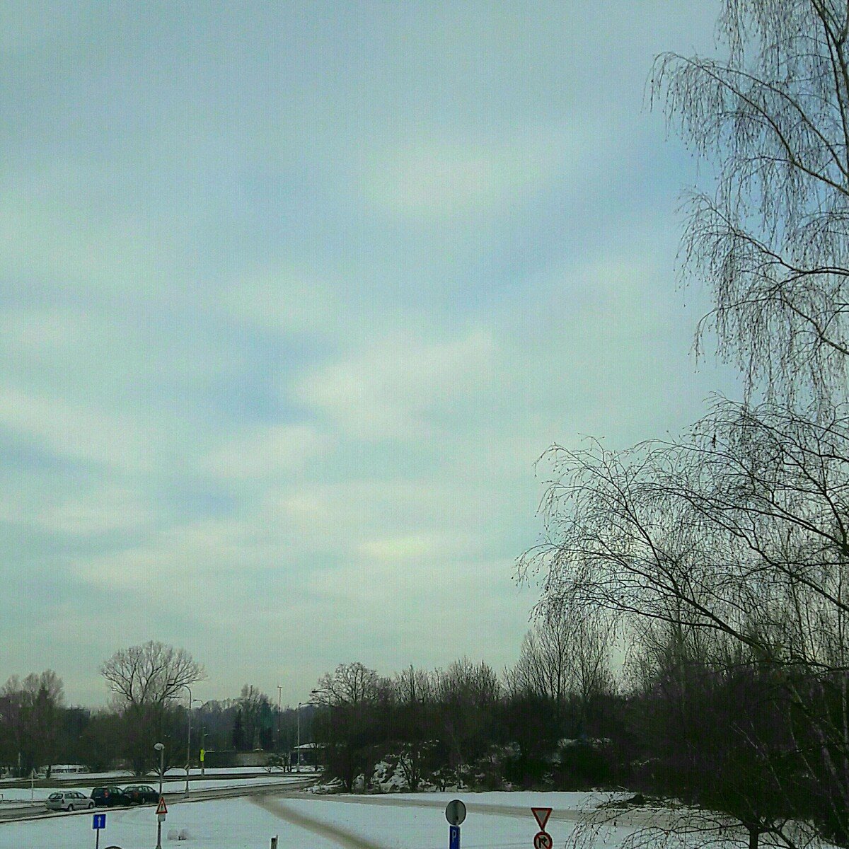 ... pokračující obleva, zelenající se pruhy vytápěných trávníků mezi paneláky, ze sněhu kaše, mírný JZ vítr...