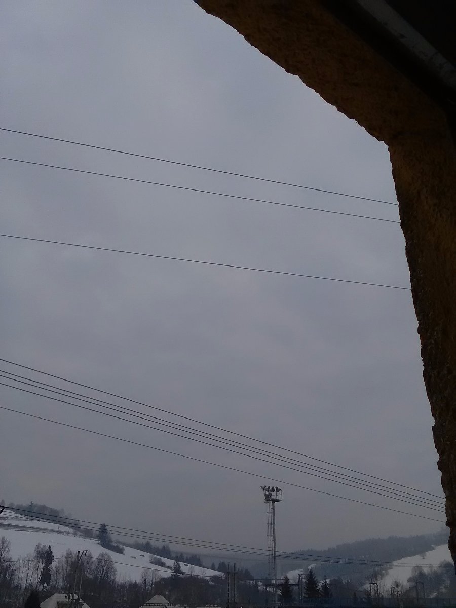 Oblačnost 100%, zákl.oblačnosti 1094,37m.n.m., tlak 1028,9hPa→, dohlednost 13km, rel.vlhkost 78,9%, abs.vlhkost 2,76g/m3, VSV vánek 56° 1,1m/s(1 Bft), poc.teplota -8,12°C, ochl.větrem -6,16°C, tepl.ros.bodu -7,73°C, tepl.mraků -9,72°C, HUMIDEX -7, délka dne u nás = 9hod.52min.25vt.