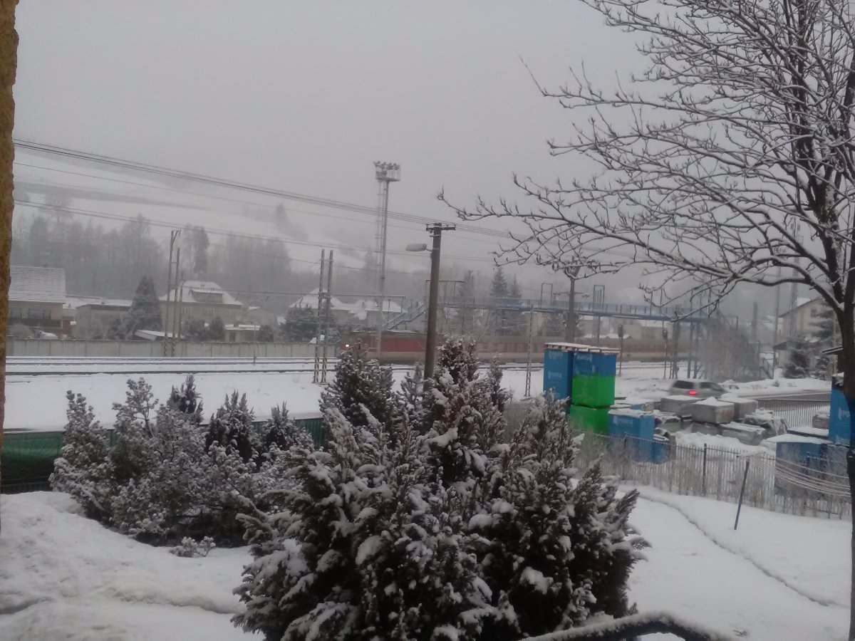 Dnes přes den teplota kolem 0°C Připadlo cca 3cm a drží i na stromech. Celkem 16 cm.