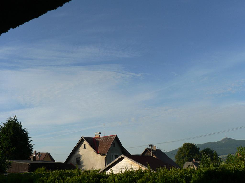 Slunce prozařuje vysokou oblačnost nad Jizerskými horami...Už je pěkně vysoko...
