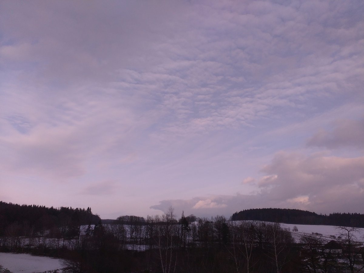 Oblačnost 92,1%, zákl.oblačnosti 1101,19m.n.m., tlak 1021,0hPa↓, dohlednost 20km, rel.vlhkost 79,9%, abs.vlhkost 4,84g/m3, J větřík 176° 1,8m/s(2 Bft), poc.teplota 0,09°C, ochl.větrem 1,62°C, tepl.ros.bodu 0,14°C, tepl.mraků -1,86°C, ozon 286D.U.(-26%,extrémně podprůměrný stav), HUMIDEX 2.