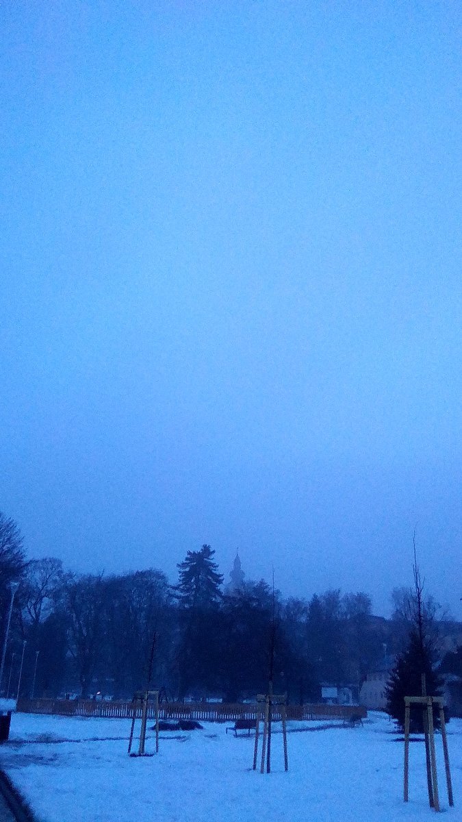 foto z 2017 02 21 v 07:08:16 sníh u zastávky pomalu mizí trochu mží je 5° a fouká vítr
