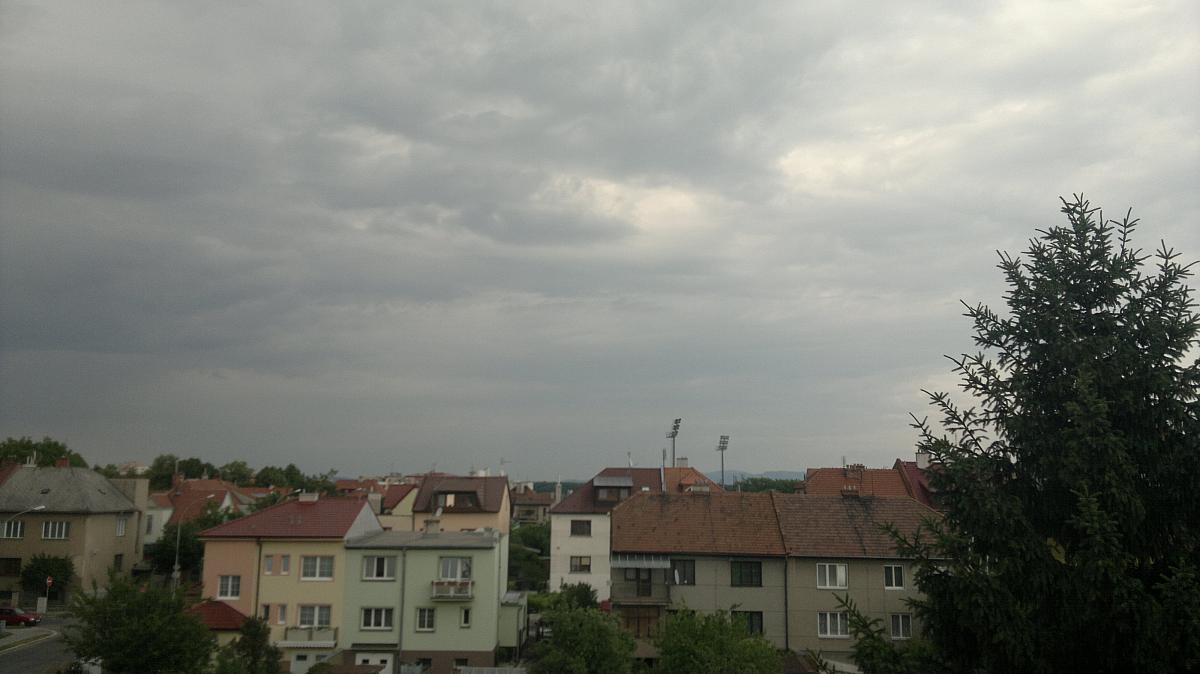 velice silný slejvák, kanály nepobírají, z chodníků jsou potůčky... silně dokumentační foto z mobilu...