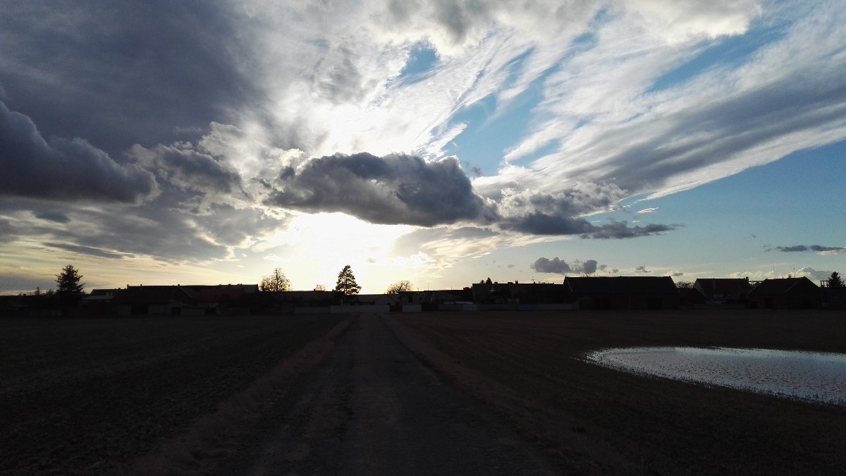 Slabá dešťová přeháňka, vítr už čerstvý.