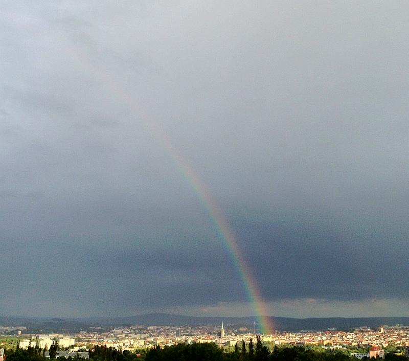 za celý den asi 10 silných přeháněk... vytvořila se duha...