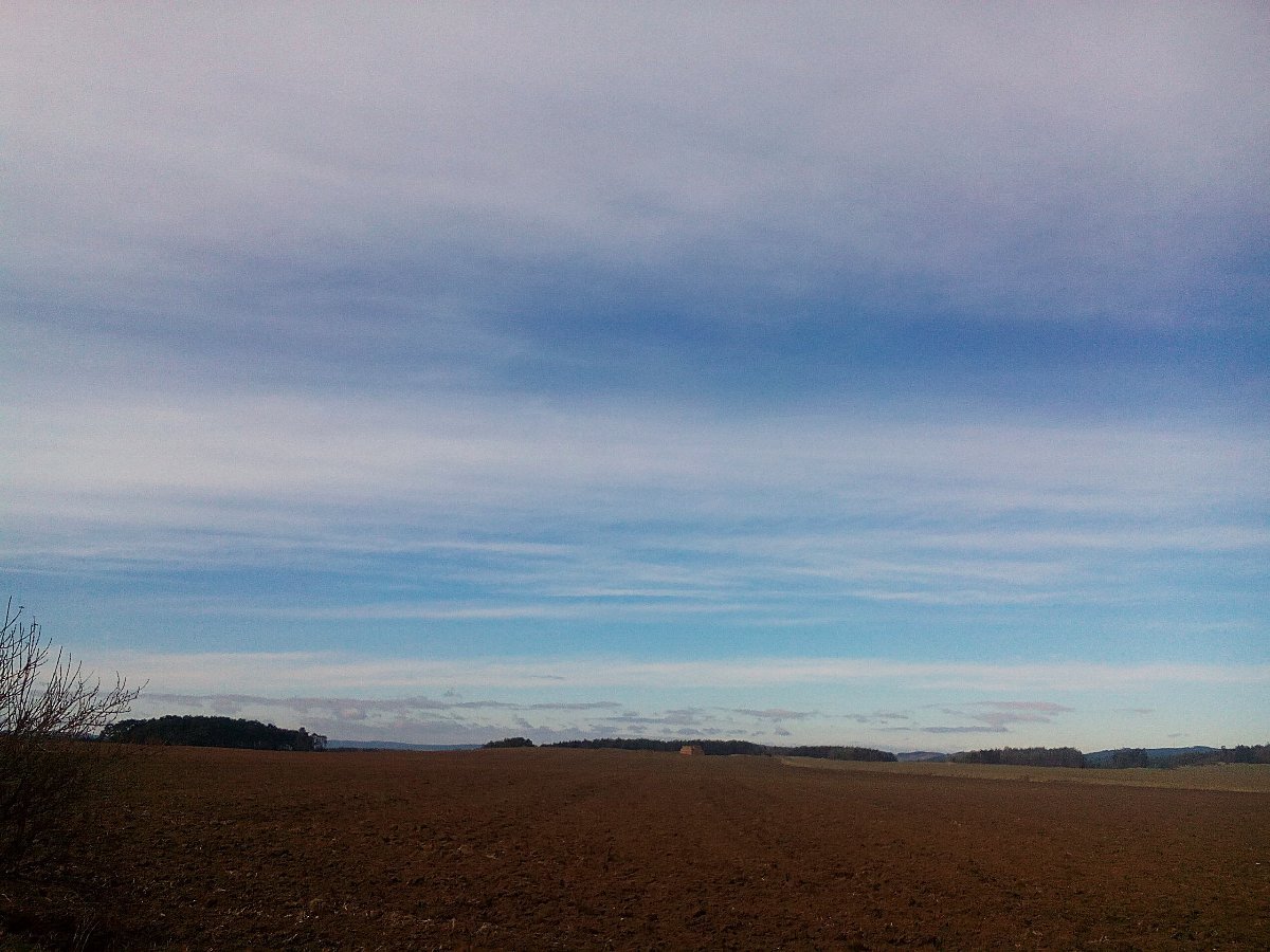 Částečné ubývání oblačnosti od Z, tlak 1005,8 hPa, JZ vítr 3-5 m/s. Noční srážky pouze 2,3 mm.