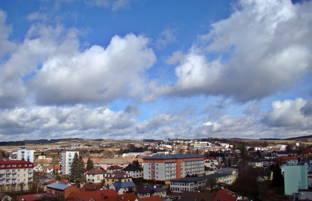 Oblačno, mírně pofukuje. Spokojenost. Tlak 999 hPa, vítr Z 3,6 m/s.