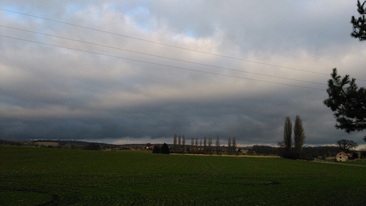 foto z 2017 03 07 v 16:55:43 zachycuje černé mraky na obzoru nad hlavou místy modrá obloha - fouká studený vítr