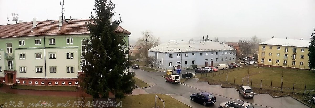 Zamračené po rannom slabom snežení,teraz slabunky dážď zo snehom.