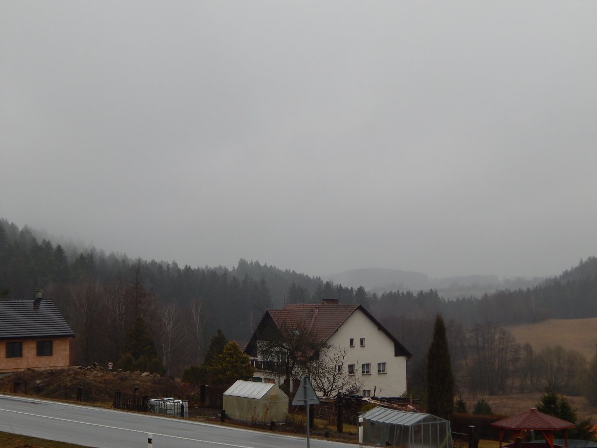 Špatné počasí. Mlha, vítr. Vlhkost 87%, vítr S 2,2 m/s. Dohlednost 100 m. Srážky 4 mm.
