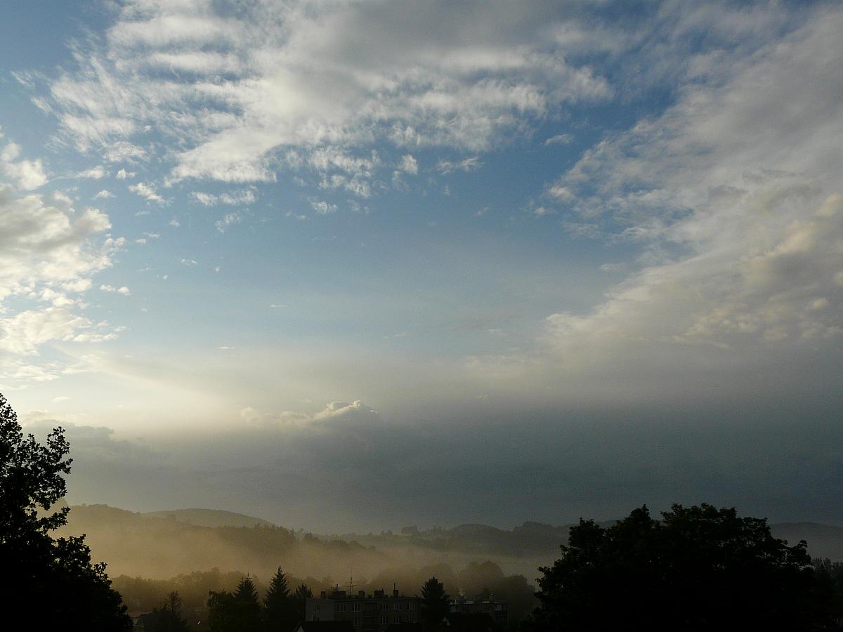 Velká oblačnost (6/8),přeháňky, tlak 1001,8 hPa, vítr JZ 213° 1,8m/s, vlhkost 85,2%, viditelnost 12km, zákl.mraků 539m.