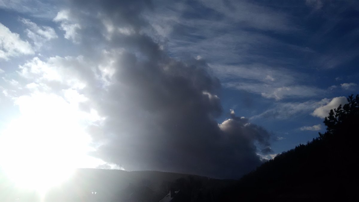 Přechodné protrhávání oblačnosti se slabými přeháňkami, tlak 1000,7 hPa, Z vítr 6-13 m/s.