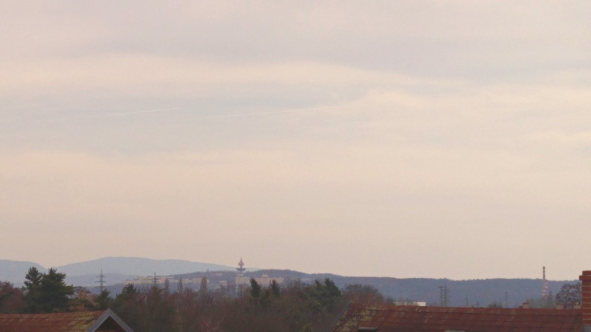 Vysoká oblačnost,přes kterou Slunce prosvítá,bezvětří