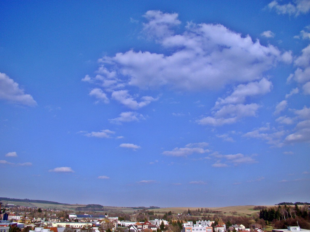 Mírný až čerstvý JV vítr. Na JZ první nepatrné obláčky.