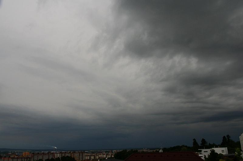 Nad Plzeň se přihnala prudká bouře s přívalovým deštěm a kanonádou blesků a hromů (foto - příchod bouřky do Plzně ve 21:45)