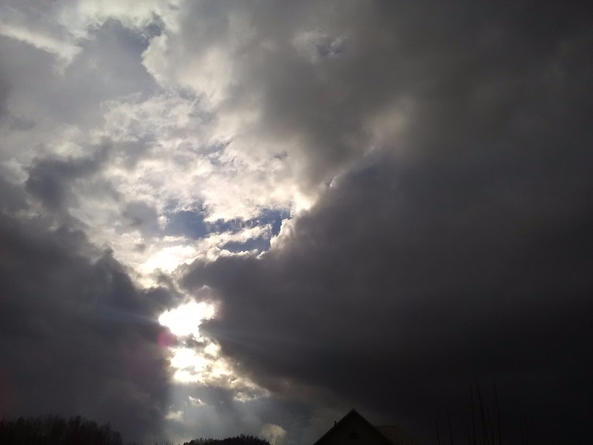 Zamračené, slabé sneženie a už aj búrka.