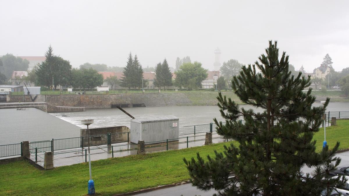 Oblačnost 8/8, slabounce prší, na okolních kopcích mlha, tlak 1011,7 hPa, vítr S 0° 2km/hod.(1 Bft), vlhkost 93,7%, viditelnost 5km.