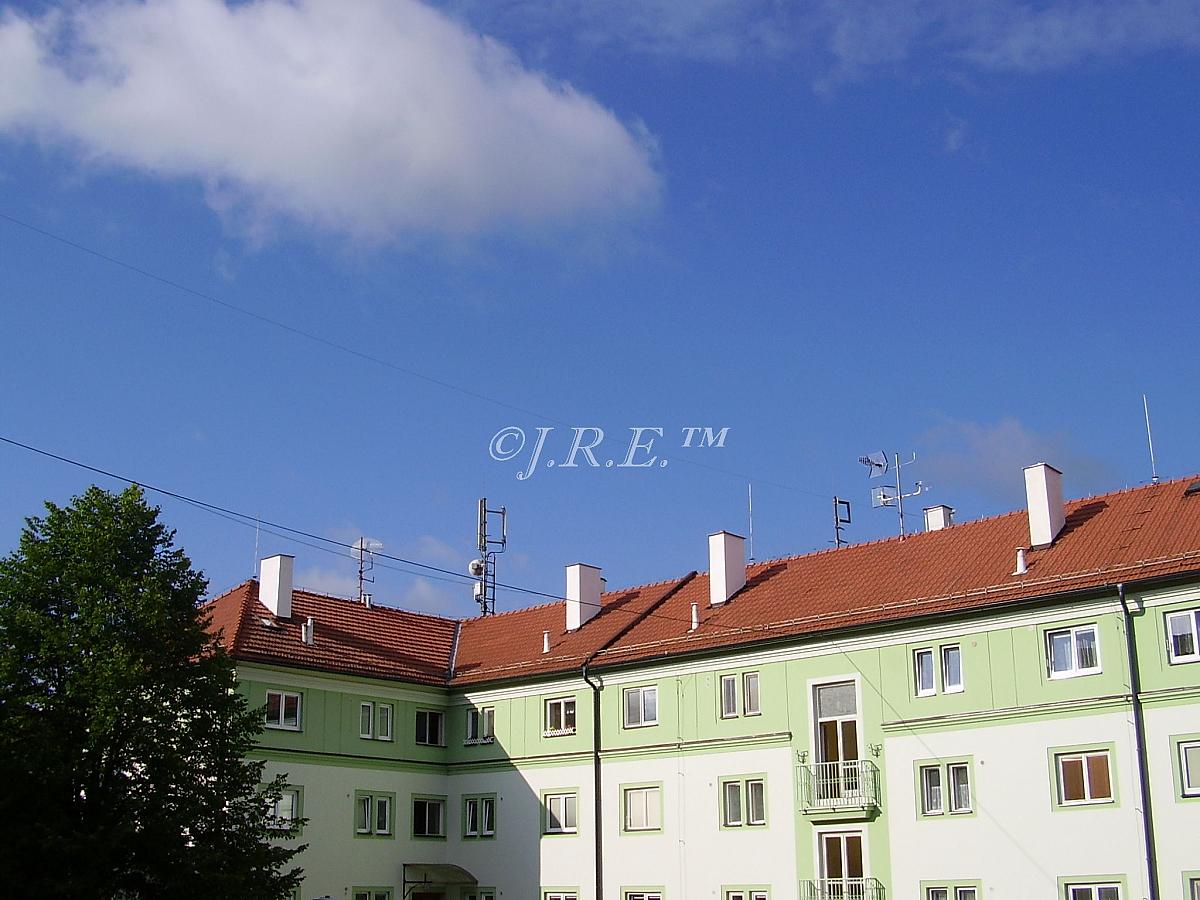 Oblačno, v dálce přeháňka s duhou (před 10 minutami)
