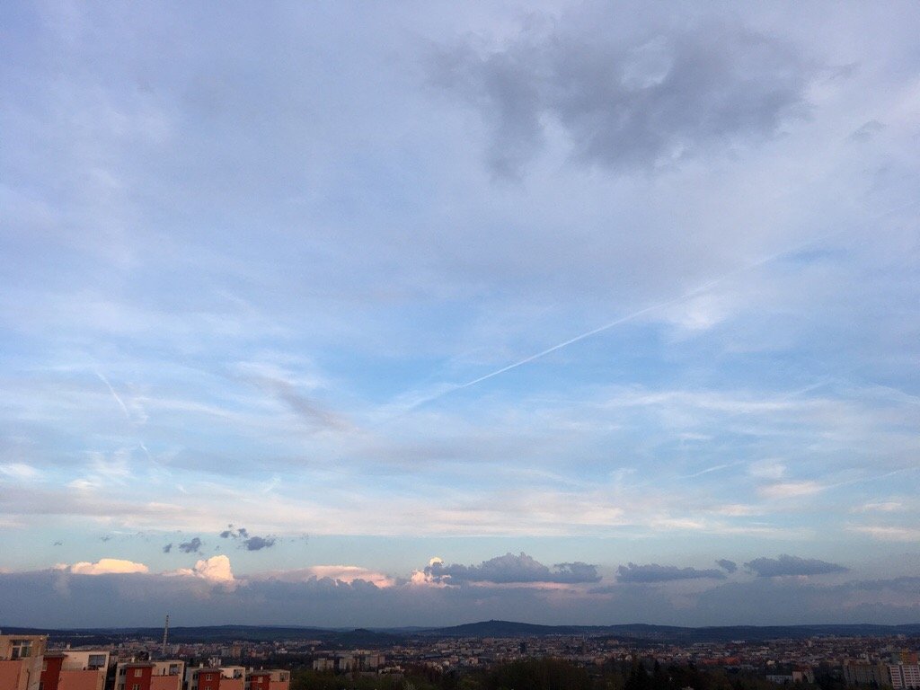 Klidno nebo jen slabý vítr. Nastupuje oblačnost studené fronty.