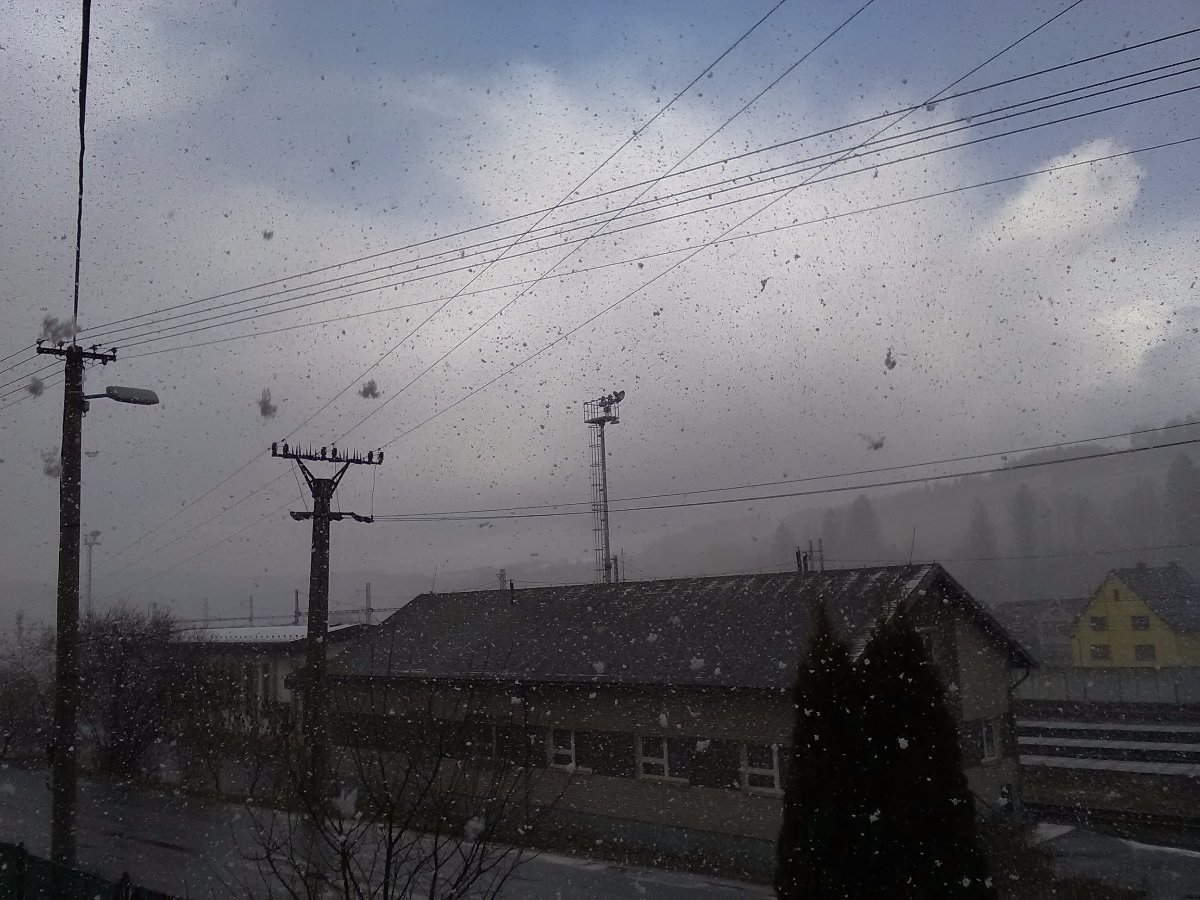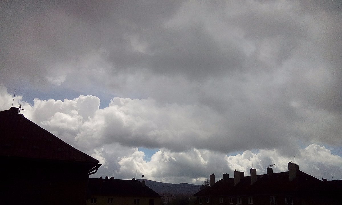 Skoro zataženo. Od severozápadu se žene silná přeháňka. Tlak je 1018hPa, vítr SZ 19km/h, vlhkost 44%