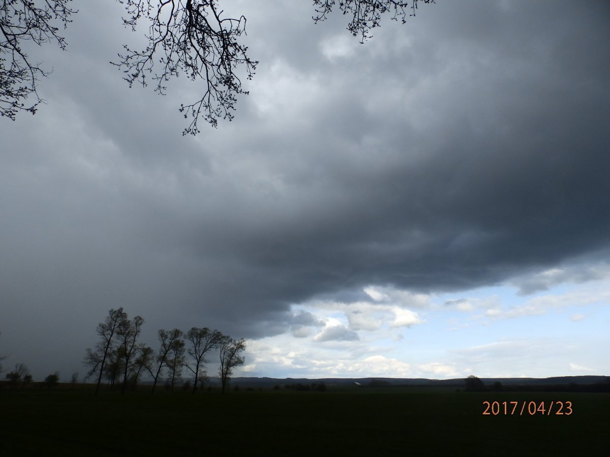 Mírný vítr,tlak 1017 hPa,žene se přeháňka.
