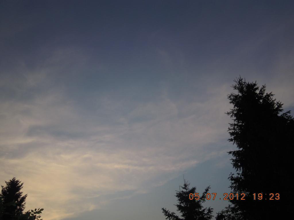 Obloha pokrytá oblačností z bouřky na východě Čech, pod ní se vytvářejí ještě i kupovitá oblaka (viz. foto)