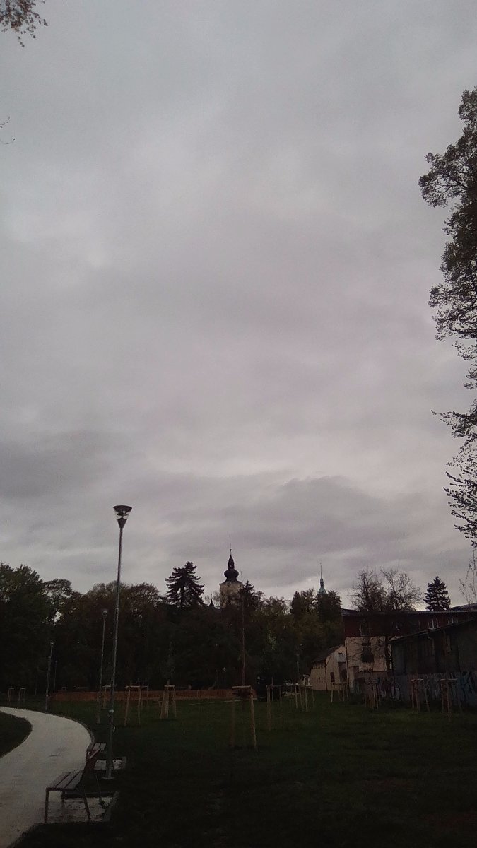 Je oblacno a bezvetri. Je mokro po nocnim desti. V Horicich mame sucho.