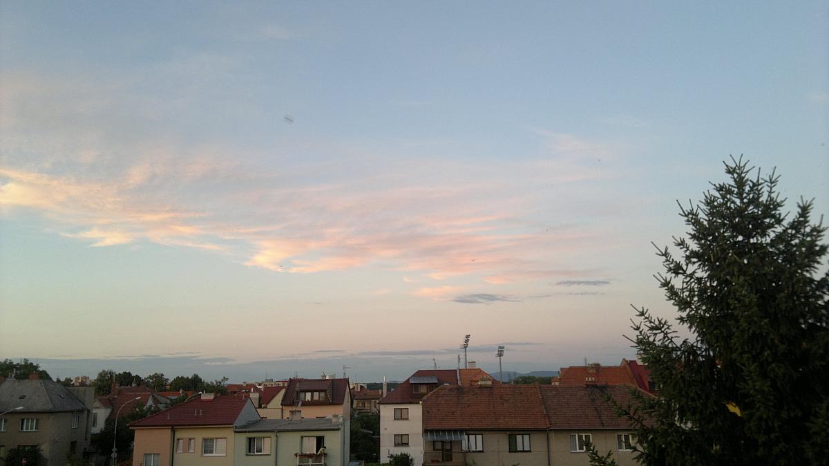 Oblačnost 6/8 ve výšce 3000m, tlak 1013,5hPa, vlhkost 87,9%, viditelnost 20km, vítr SV 50° 5km/hod.(1 Bft),