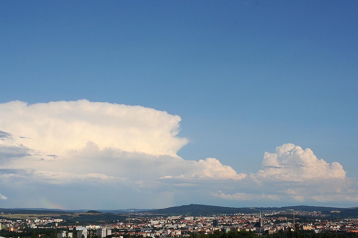 Tak se to nezdálo, ale bouřka, přívalák asi 20 minut, pokračuje dál východně.