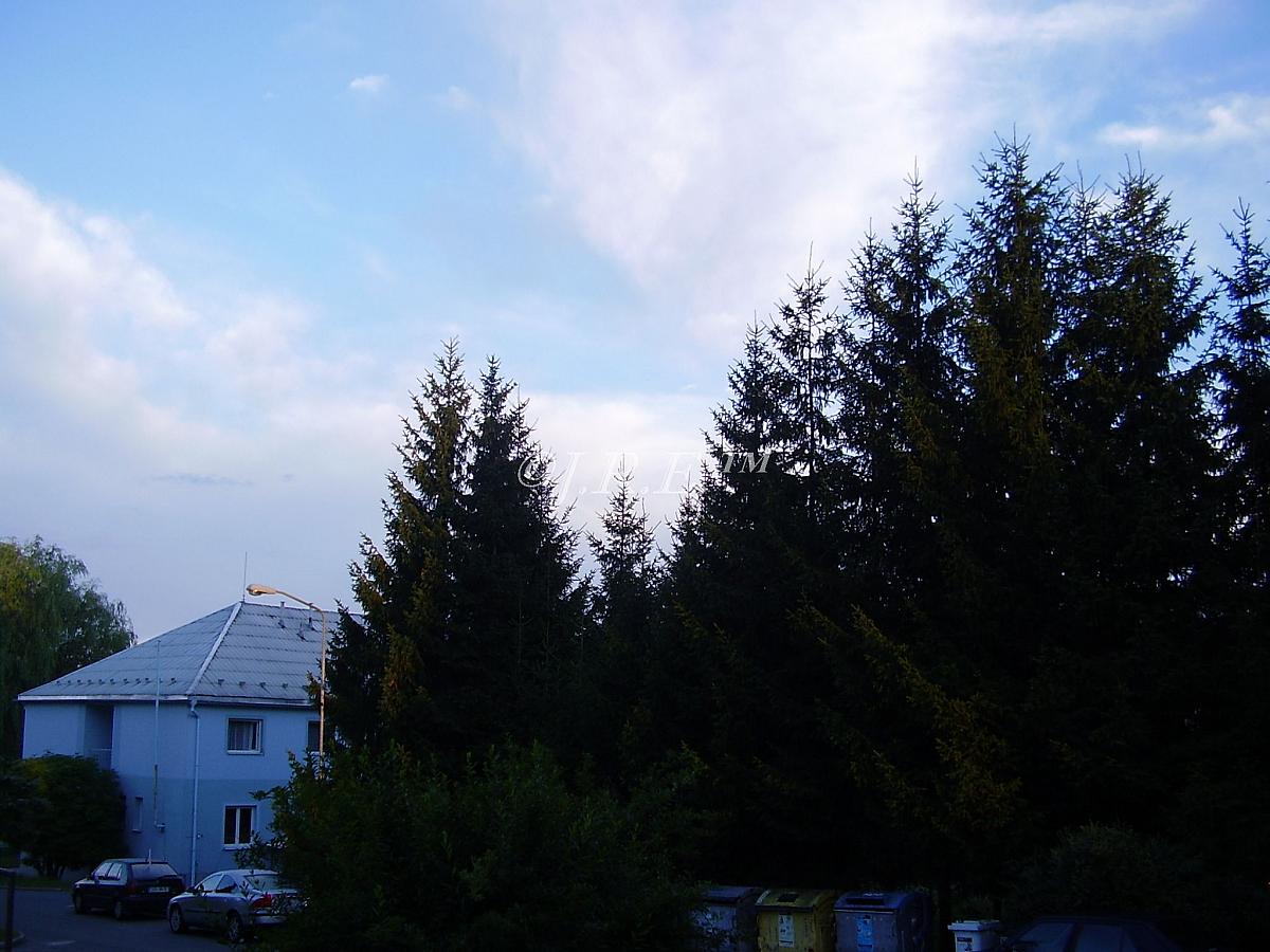 Oblačno až polojasno.Dnes bouřka s kroupami o velikosti do 1cm,Srážek 7,2mm. Poté se utvořila nad námi přehánka mírné intenzity ve které spadlo do 3mm.Na fotce příchod bouřky.