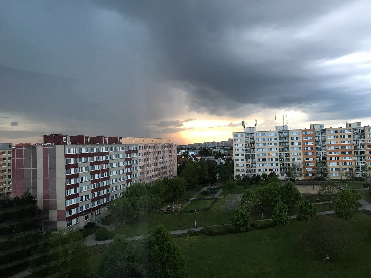 Je takové lepší oblačno. Dnešní maximum bylo 21,7°C. Je bezvětří, tlak stoupá 1005hPa, vlhkost 52%, rosný bod 9,2°C. (foto okolo 20. hodiny)
