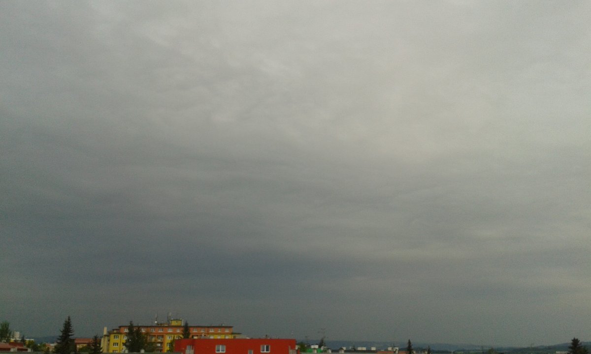 foto z 2017 05 21 v 07 56 52 zachycuje pěkně zataženou oblohu - šedivá plocha jen to letadlo je důkaz, že se jedná o oblohu fouká vítr +14°