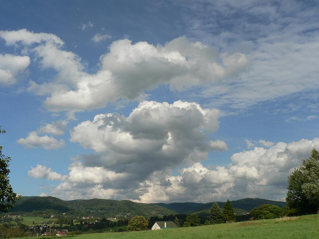 Přeháňky se rozešly na sever a na jih...Zbytky oblačnosti napíchnuté na Ještědu...