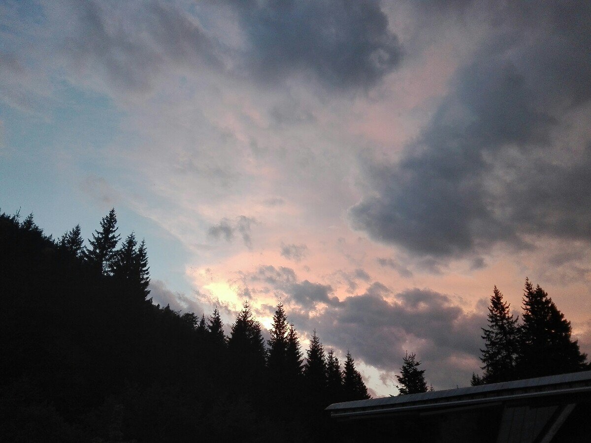 Je oblacno a bezvetri. V dalce je vydet bourka na Polsky strane Krkonos.