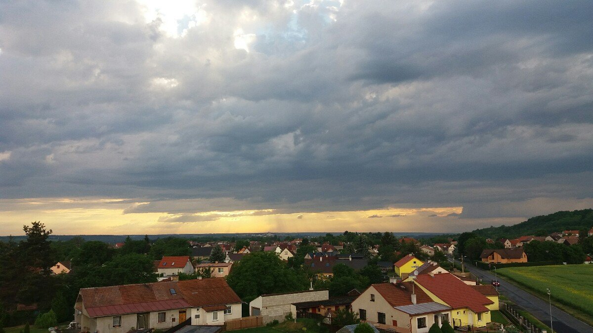Dnešní maximum bylo 30,9°C. Fouká severozápadní vánek 3km/h, tlak stoupá 1014hPa, vlhkost 47%, rosný bod 12,5°C. Všechny bouřky se nám zatím vyhnuly.
