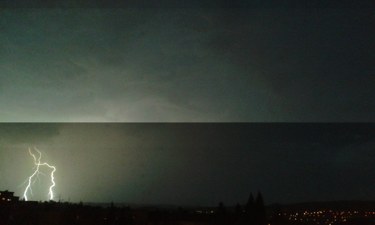 Bouře po klidu skutečně dorazila kolem půl deváté, hlavně silný narazový vítr se snažil o nějaké ty škody. Teď už zase klidno.