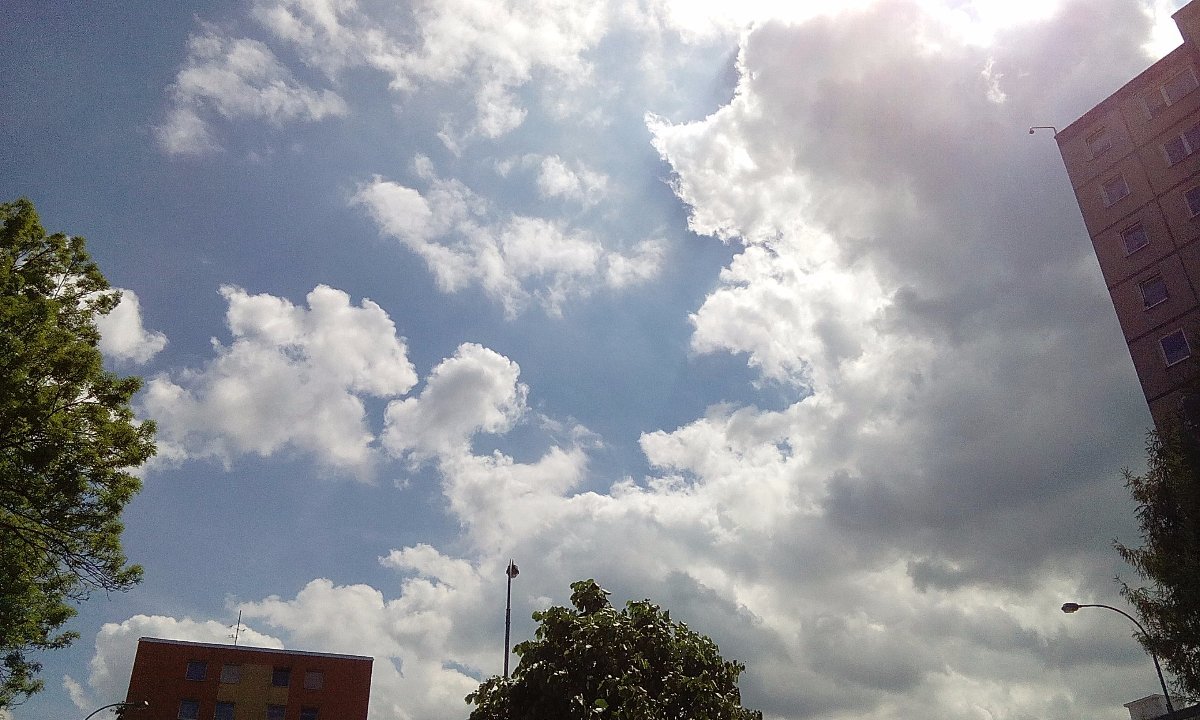 Je oblačno, fouká mírný severozápadní vítr 17km/h, tlak stoupá 1019hPa, vlhkost 47%, rosný bod 12,5°C.