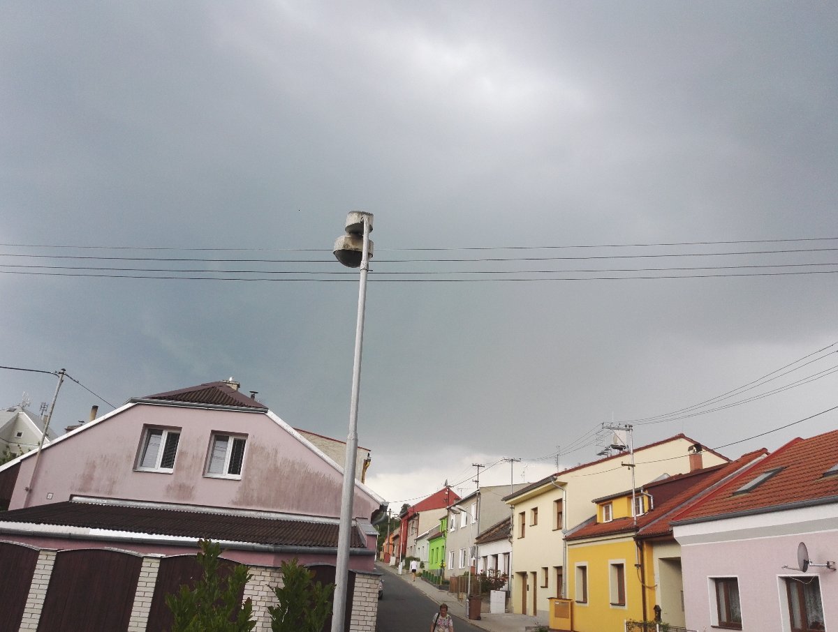 Je skoro zataženo. Během dne se dost rozfoukalo 23km/h, tlak je 1010hPa, vlhkost 46%. Asi před hodinou a půl tady byla krátká přeháňka.