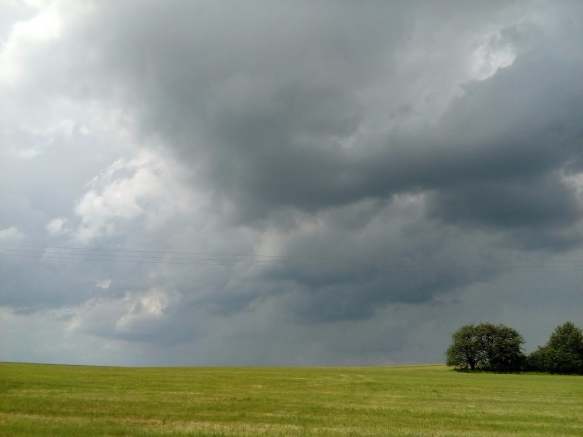 Slabý až mírný vítr. Přibývání kupovité oblačnosti. Vzdálená bouřka.