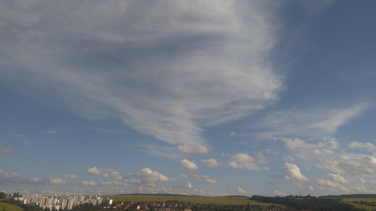 opět jedna z dnešních častých přeháněk, nárazový SZ vítr a liják