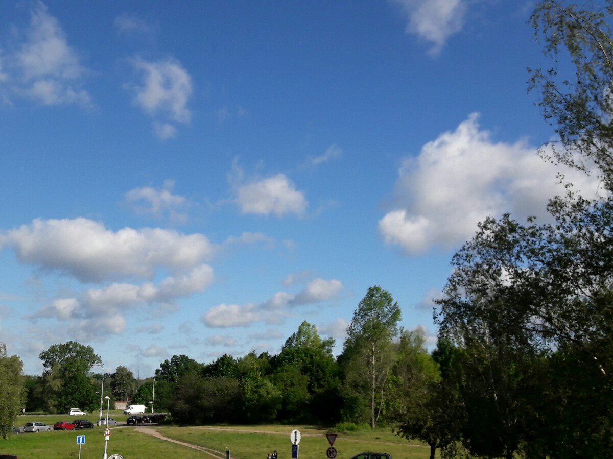 foto z 2017 06 07 v 08:39:10 zachycuje jasnou modrou oblohu bílé mraky ale nezachycuje studený vítr - teploměr ukazuje 13°