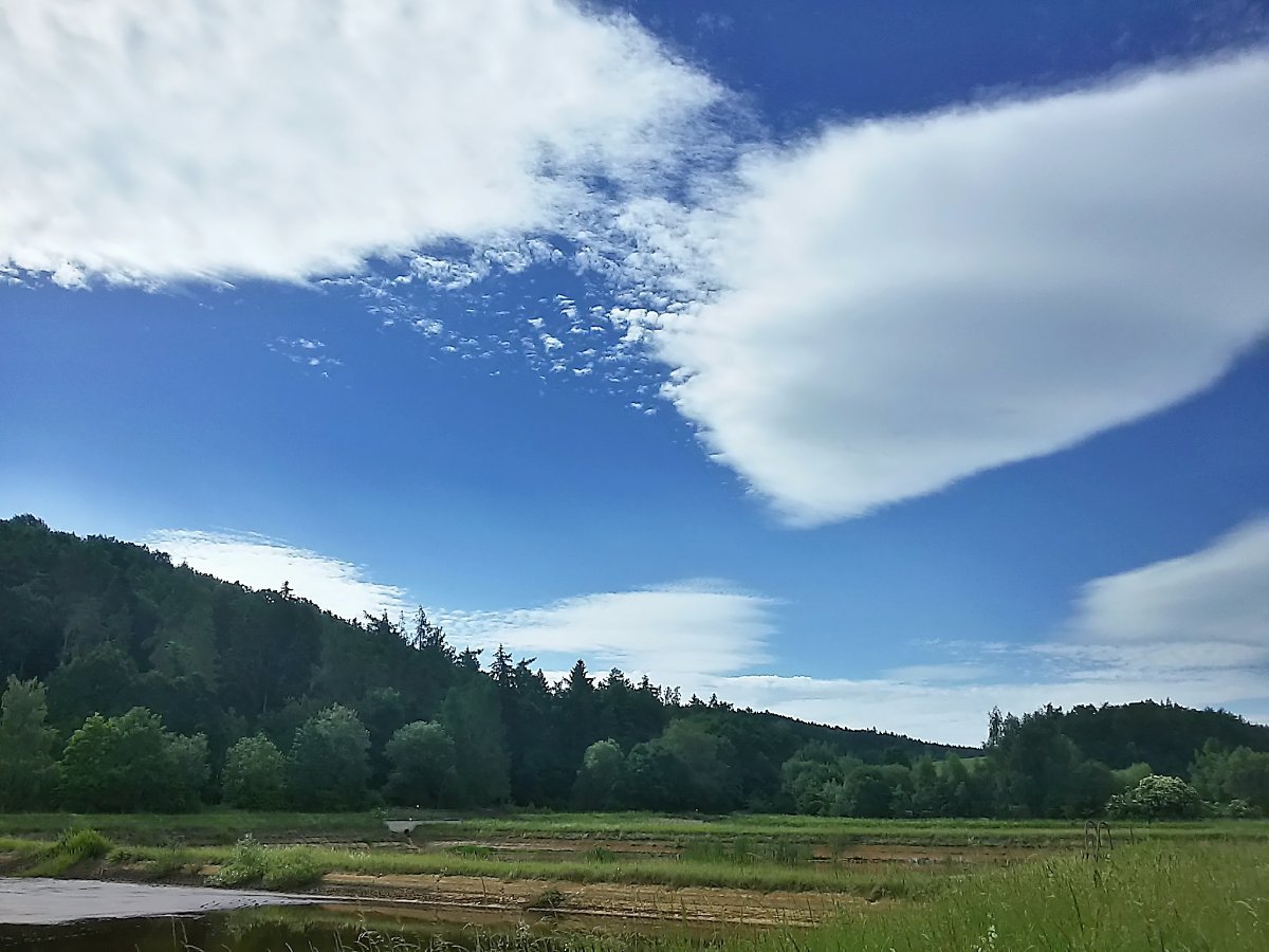 Je skoro zatazeno a uz spadlo asi 5 kapek. Vitr je slaby a je dusno.