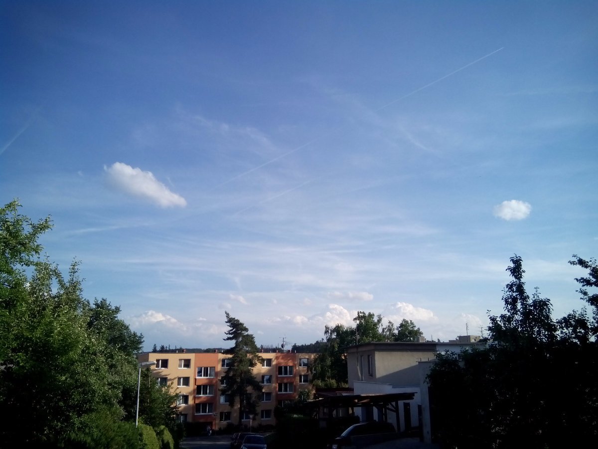 Tak se nám ta přeháňka vyhnula, ani kapka. Taplo, proměnlivý větříček, pohodička, kéž by to vydrželo věčně, ale v noci může zapršet. Tlak 1008 hPa, vítr S 0,2 m/s.