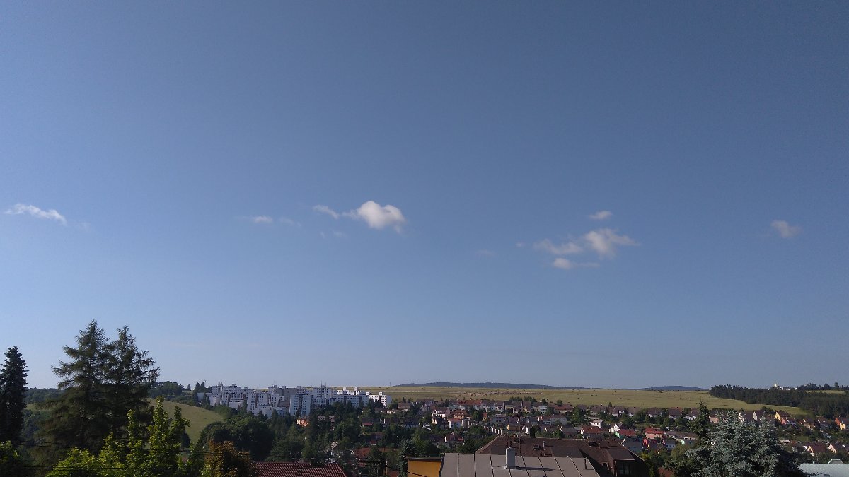 Severozápadní slabý vítr, tlak 1017,3 hPa a vlhkost 65 %.