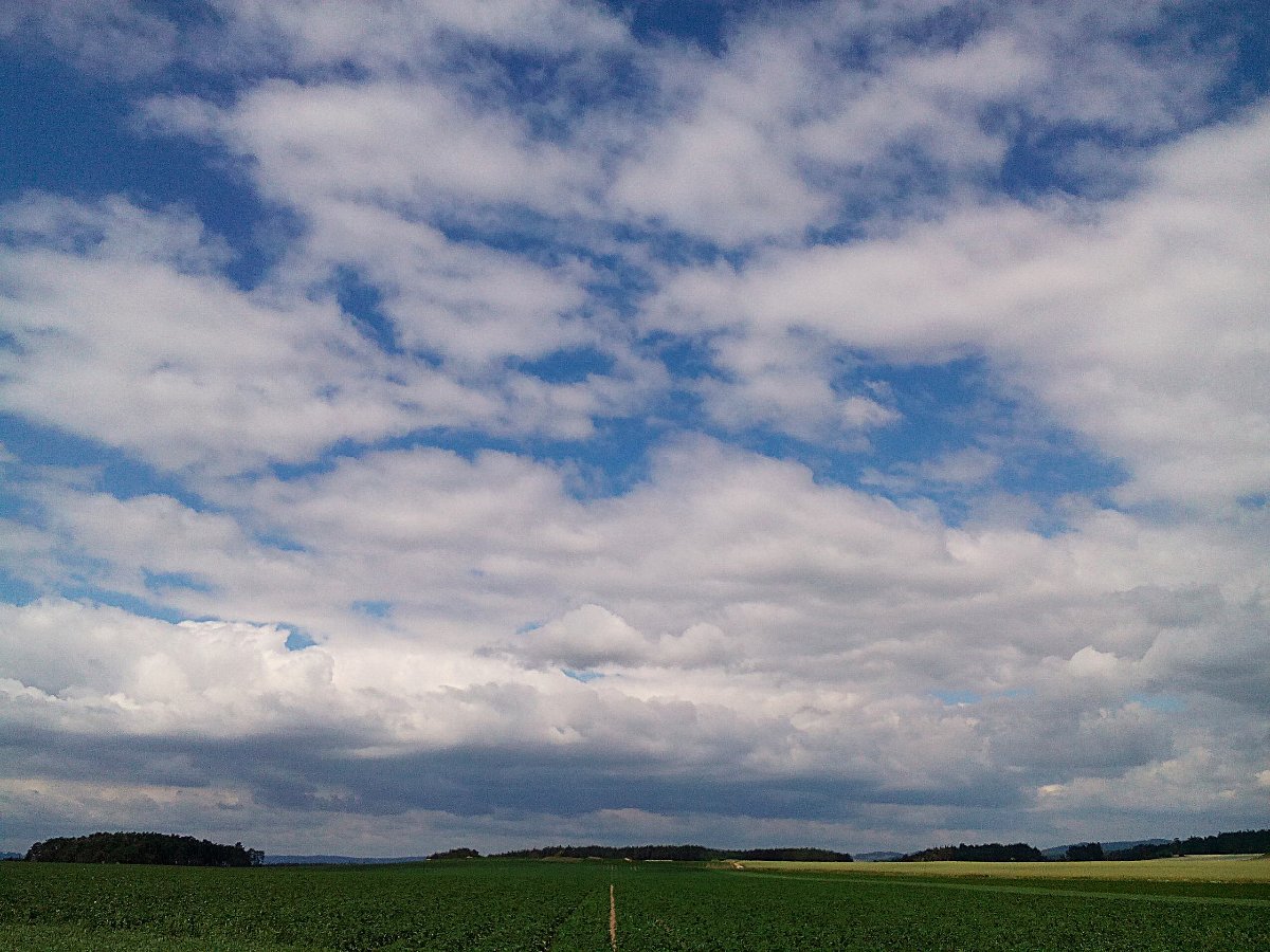 Dnešní minimum bylo 12,2°C. Skoro zataženo, fouká dosti čerstvý vítr od SZ 26km/h, tlak 1019hPa, vlhkost 52%, rosný bod 5,8°C.
