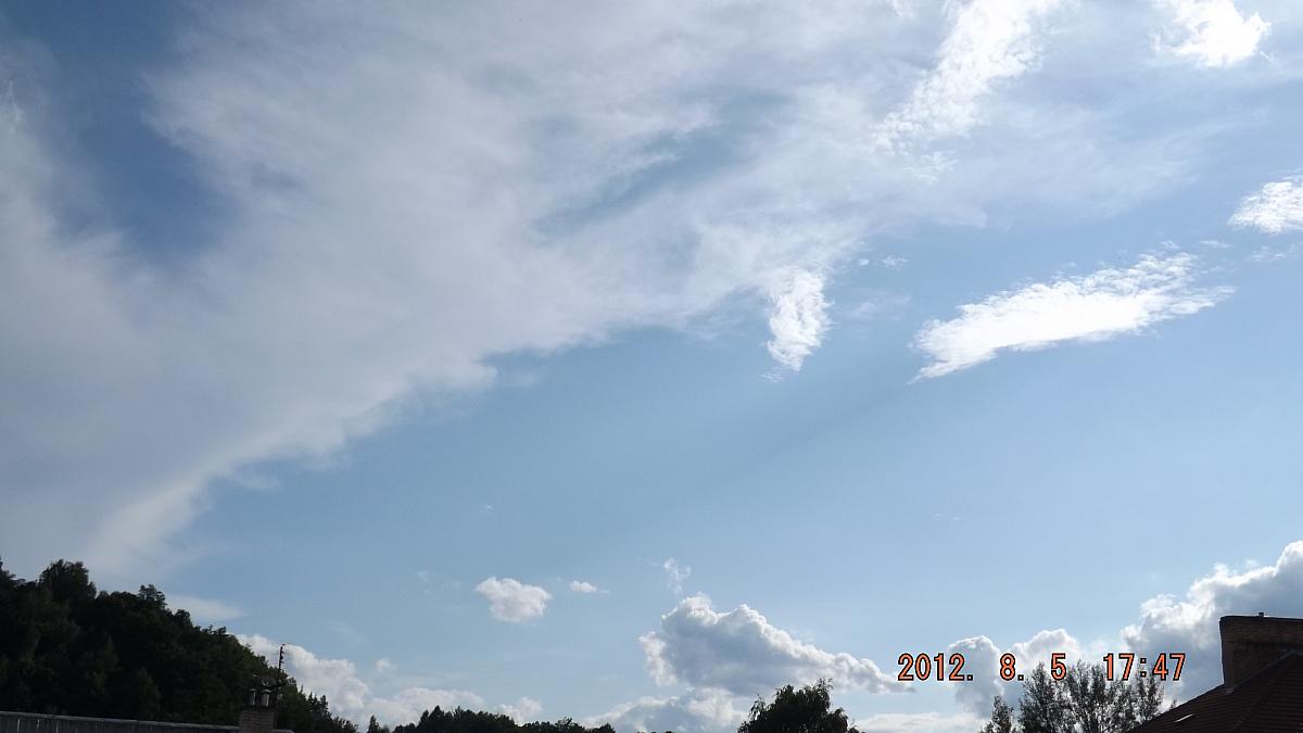 Už asi hodinu probíhá ranní bouřka. Motá se neustále kolem dokola. Zatím napršelo 4,1mm. Tlak 1013,8hPa, viditelnost 2km, vlhkost 92,9%, vítr SSZ 338° 1m/s(1 Bft).