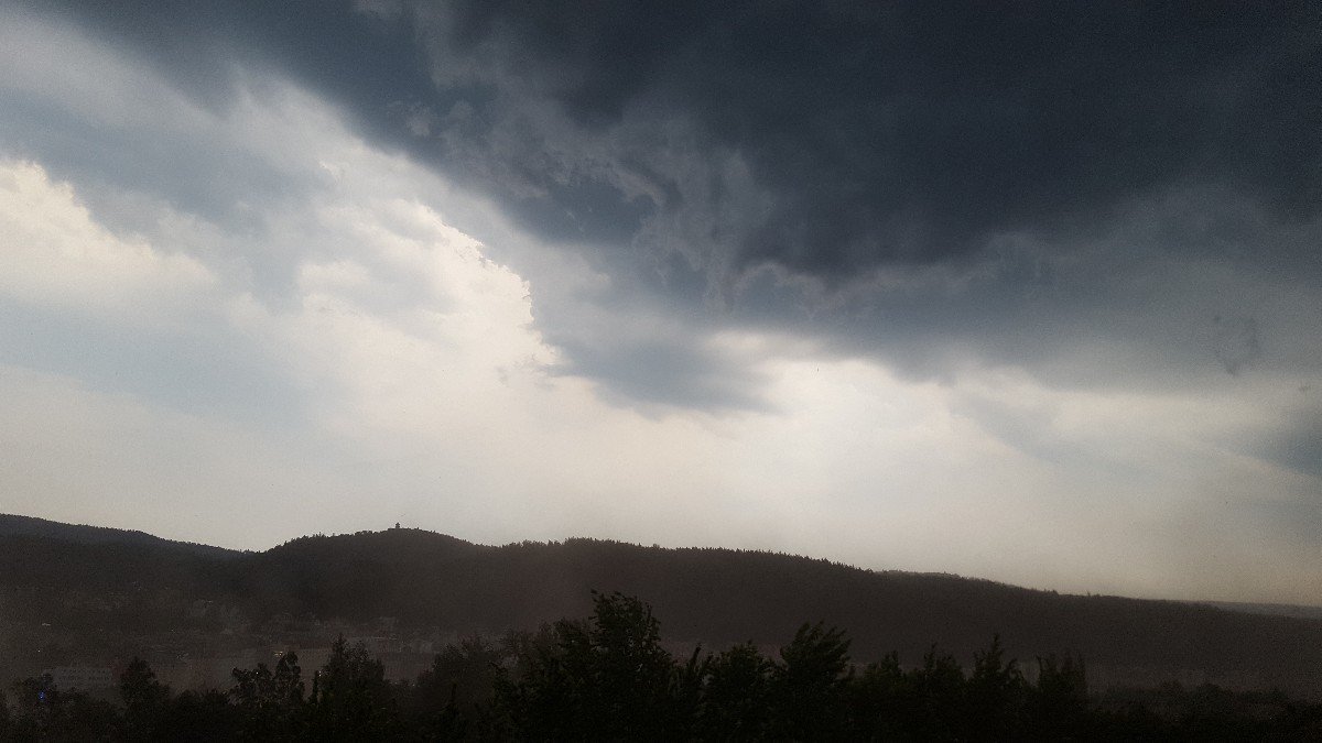 Vypadala zlověstně, ale nakonec z toho byly jen kroupy do 1 cm, nárazy větru okolo 50 km/h a silný déšť.