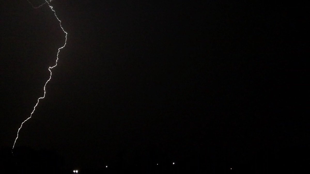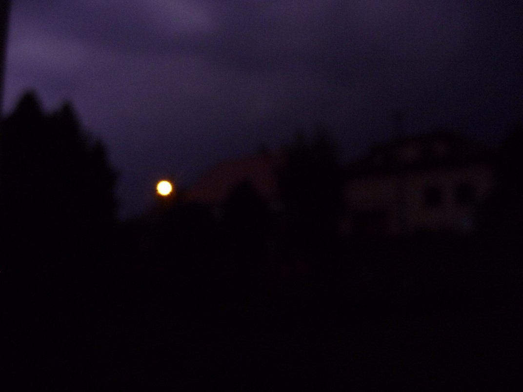 od severozápadu jde bouřka. Blesky na obzoru. Zvedá se vítr.