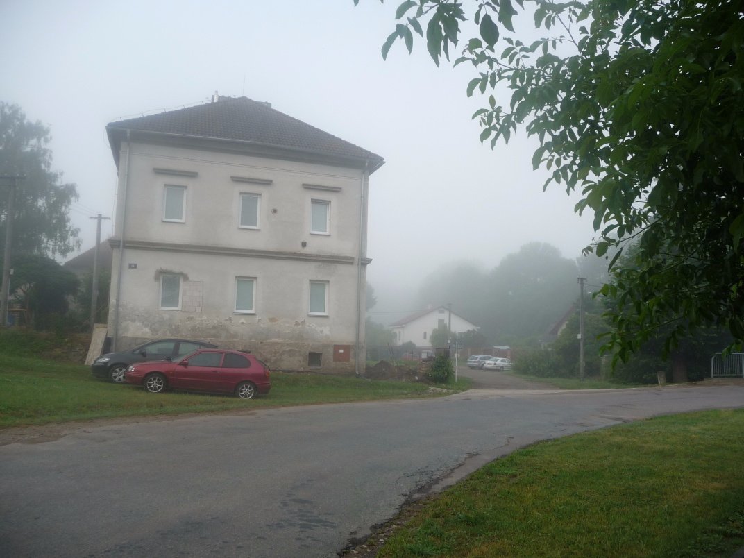 Dnešní minimum bylo 14,3°C. V centru města je přízemní mlha (na fotografii), skoro jasno, bezvětří, tlak 1005hPa, vlhkost 99%.
