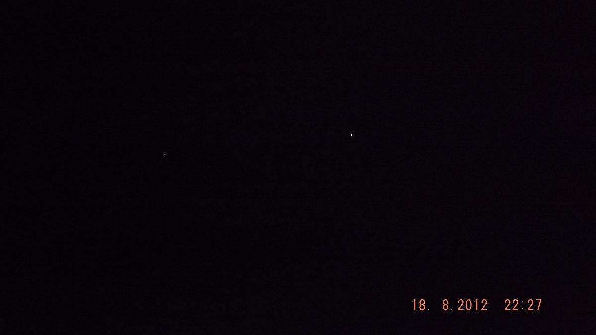 Skoro jasno, tlak 1024,8hPa, vítr VSV 75° 0,4m/s, viditelnost 30km, vlhkost 95,8%.